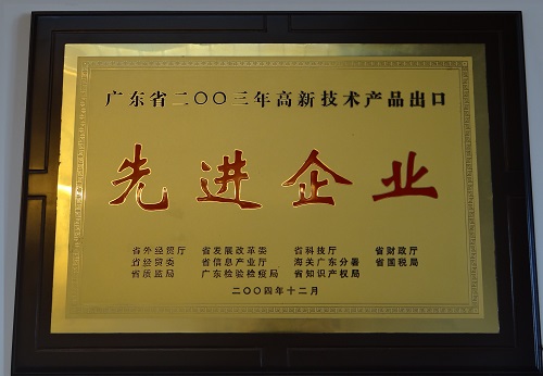 荣获广东省高新技术产品出口先进企业